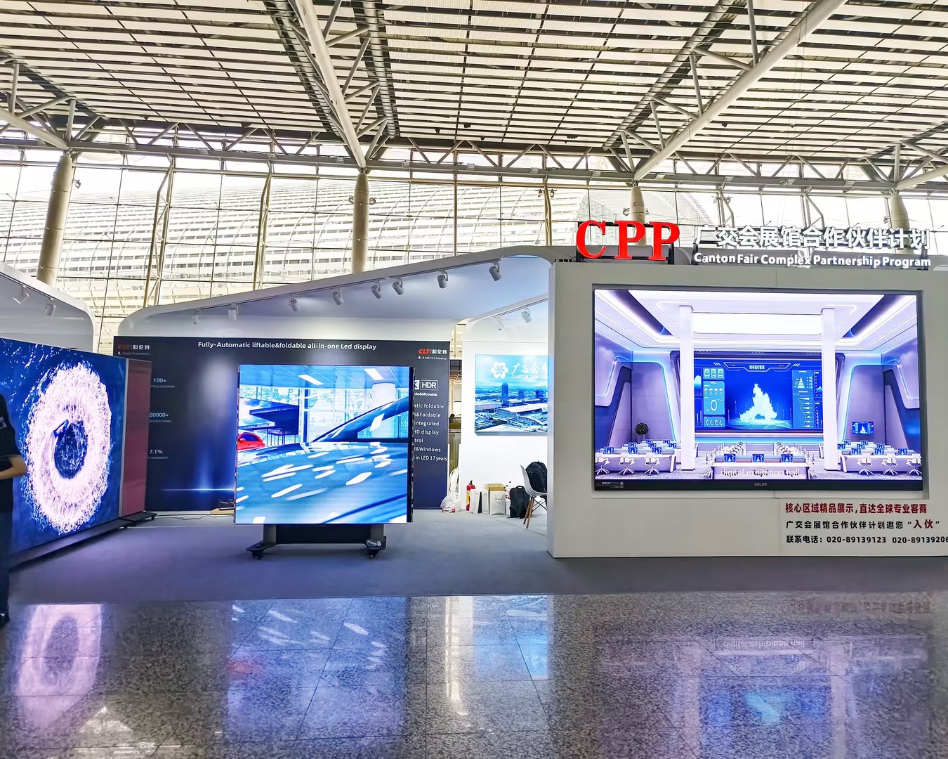 10.3馆入口飘台独立展位则展示了1xBET领先行业的全球首款LED全自动升降一体机等创新产品,彰显了1xBET作为“广交会连续11LED屏幕指定供应商”的深厚底蕴。